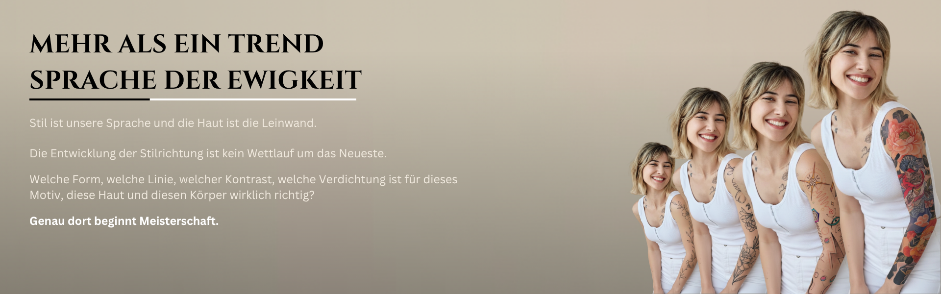 Die Entwicklung der Stilrichtungen im Tätowieren ist kein Wettlauf um das Neueste. Sie ist eine fortlaufende Verfeinerung visueller Sprachen. Trends kommen und gehen. Was bleibt, ist die Qualität der Entscheidung: Welche Form, welche Linie, welcher Kontrast, welche Verdichtung ist für dieses Motiv, diese Haut und diesen Körper wirklich richtig? Genau dort beginnt Meisterschaft.